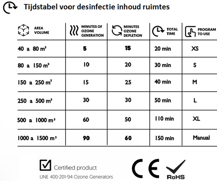 De “OZOCAB” van onze fabrikant “PONY” is voorzien van een verplicht geldig certificaat die nodig is voor gebruik als desinfectie doeleinden.
